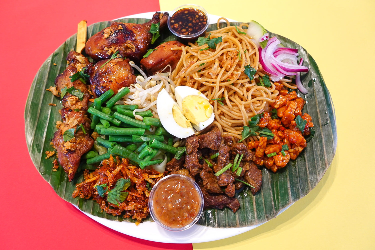 Een partybak is een aluminium bak (maat S, M of L) gevuld met gerechten zoals bami, nasi of nasi koening.